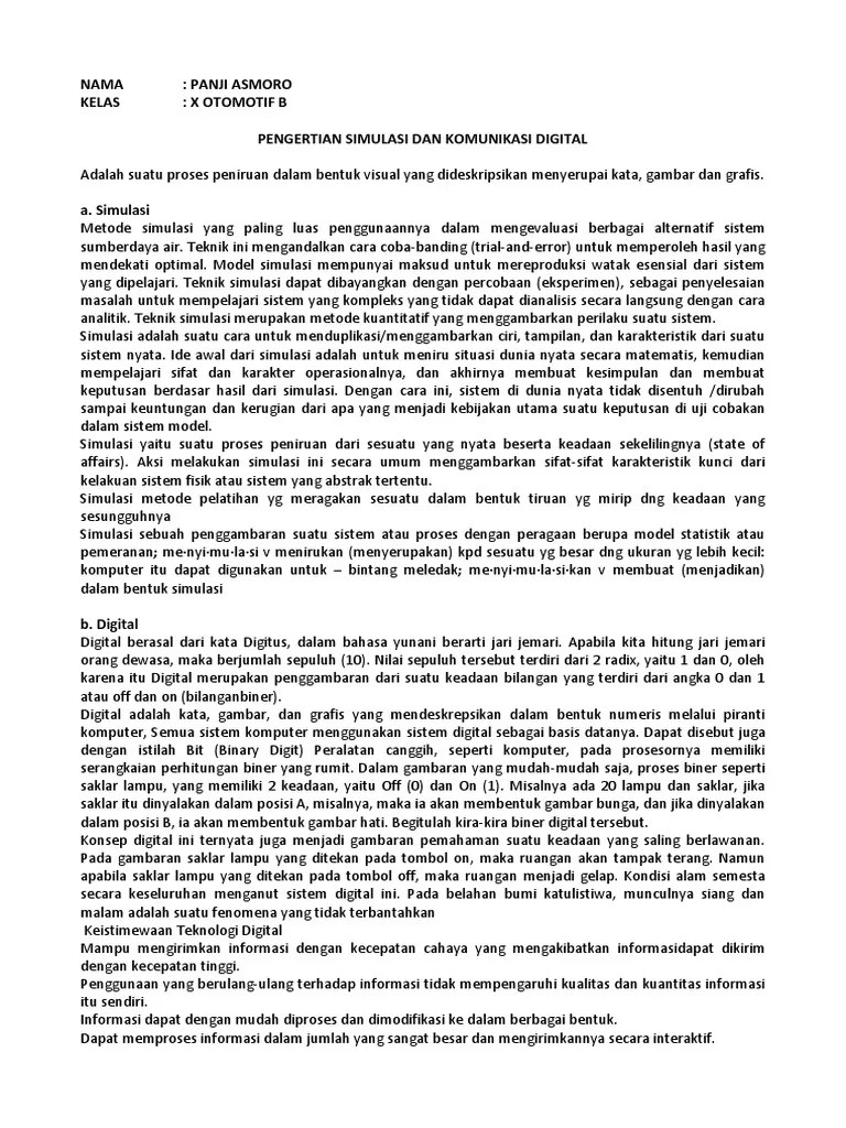 Mata pelajaran simulasi digital sekarang dikenal juga dengan nama simulasi dan komunikasi digital (sikomdig). Simkomdig ini dipelajari di kelas x smk semua bidang keahlian (c1) selanjutnya mari kita bahas pengertian dari simulasi dan komunikasi digital (simkomdig) Silabus mata pelajaran simulasi digital otomotif (dasar program keahlian teknologi dan rekayasa) satuan pendidikan : Materi lengkap simulasi digital kelas 10 [pdf & #1 pengertian simulasi 3d simulasi visual 3d ialah simulai yg memiliki dimensi bentuk ruang dan kedalaman pada objek yang di buat. pengertian tentang komunikasi daring, fungsi dan. x tkj 3 mapel : Materi simulasi digital kelas x semester 1. Atau pembahasan fungsi dan jenisnya yang ada. Proses pemindahan pengertian dalam bentuk gagasan, informasi, dari seseorang ke orang lain …. Menghayati dan mengamalkan ajaran agama yang dianutnya. A short summary of this paper. Menghayati dan mengamalkan ajaran agama yang dianutnya 2.